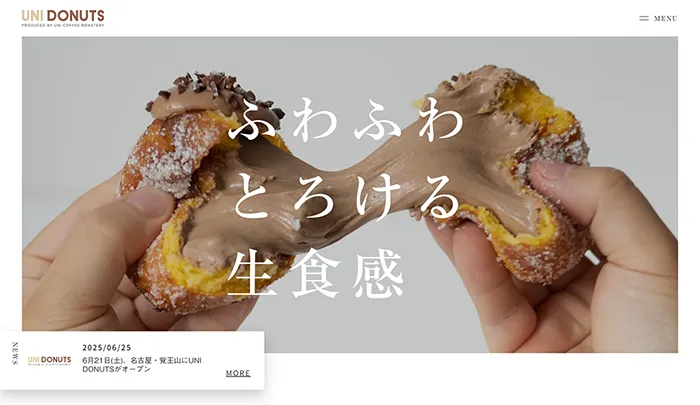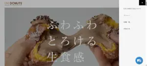 UNIDONUTSのwebサイトは、ABOUTとメニューとお知らせのシンプルなLPです。
