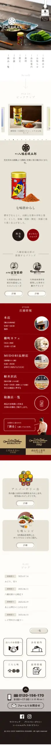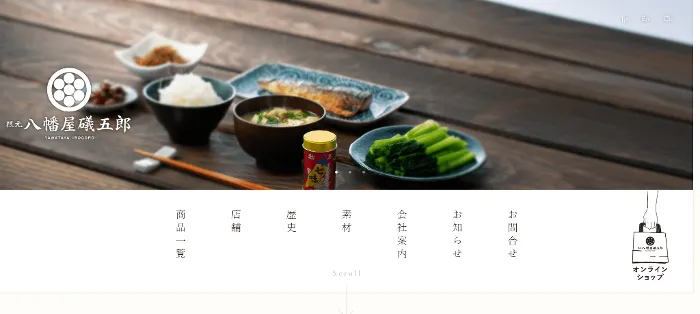 七味唐辛子を扱っている根元 八幡屋礒五郎のサイトは、商品一覧・店舗・歴史等の各ページがあり、全体的に明朝体の文章で書かれています。和のイメージと上質な印象を受けます。レシピの掲載もあり、七味を利用して料理がしたくなるサイトです。