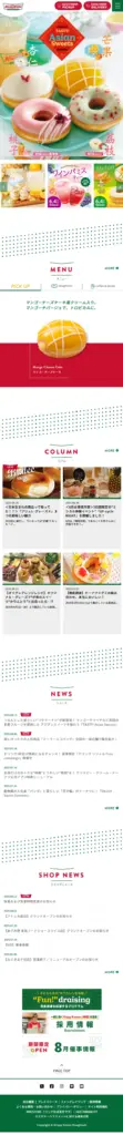 クリスピー・クリーム・ドーナツ・ジャパン株式会社のwebサイトは、ワンプレビューに大きく画像が表示されているサイトです。ニュースページへのリンクが付いています。メインビューの下にはNEWSやcampaign、quickorderへのリンク画像があります。今回は勉強のために、デザインを分析しました。