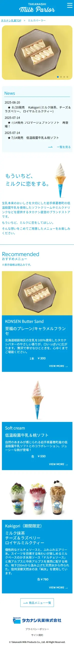 タカナシミルクパーラー 公式サイト(https://www.takanashi-milk.co.jp/milk-parlor)分析