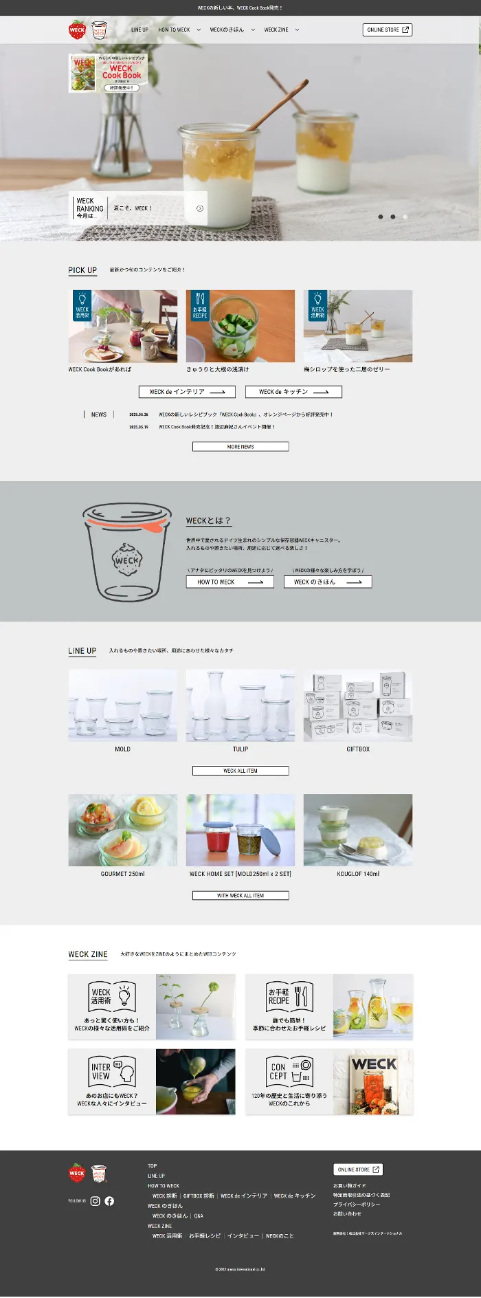 WECKのwebサイトは、見やすくWECKについて紹介されているサイトです。