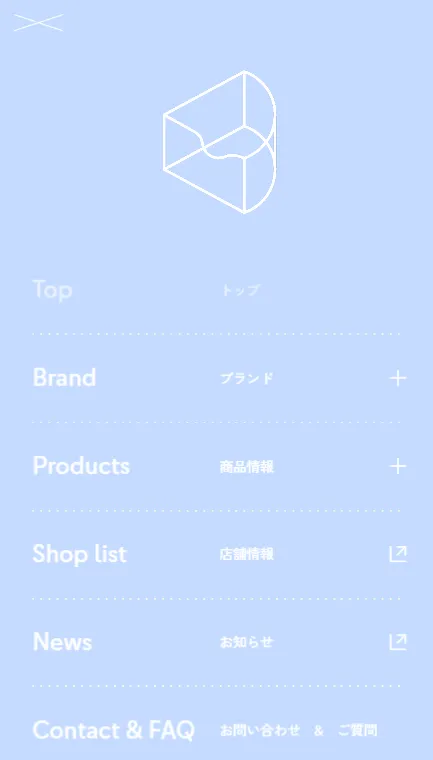 PCもスマートフォンも左上にハンバーガーメニューがあり、クリックすると上から下にメニューボックスが開きます。