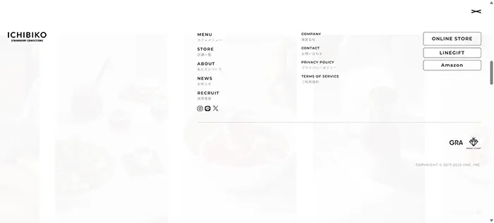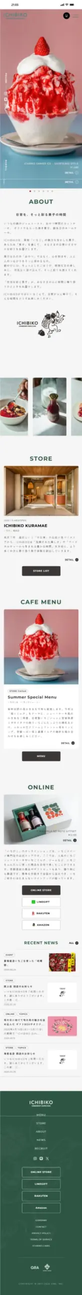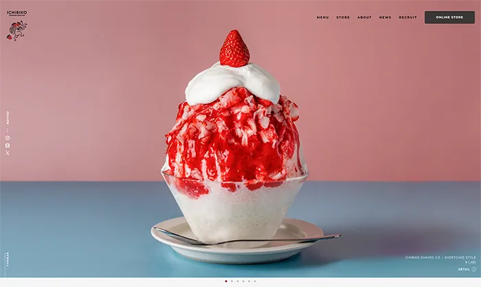 ICHIBIKOのwebサイトは、画像がとてもきれいなサイトです。文字が小さめです。お洒落でとても商品を食べたくなるサイトです。