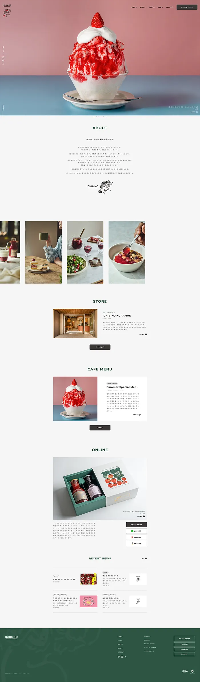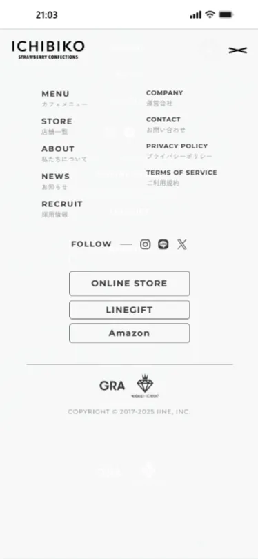 ICHIBIKOのwebサイトは、画像がとてもきれいなサイトです。文字が小さめです。お洒落でとても商品を食べたくなるサイトです。