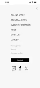 PCもスマートフォンも右上にハンバーガーメニューがあります。タップすると右から左にメニューが開きます。