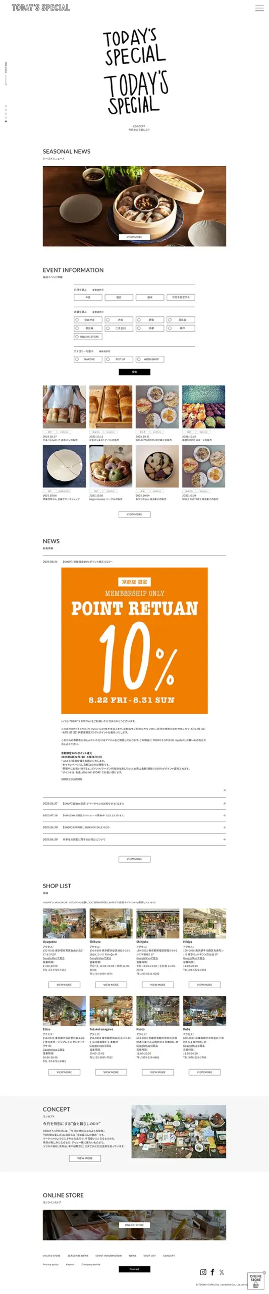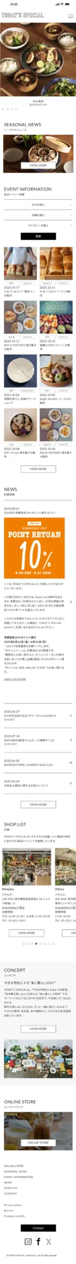 TODAY’S SPECIAL トゥデイズスペシャルのwebサイトは、シンプルなデザインで格好良いお洒落なサイトです。