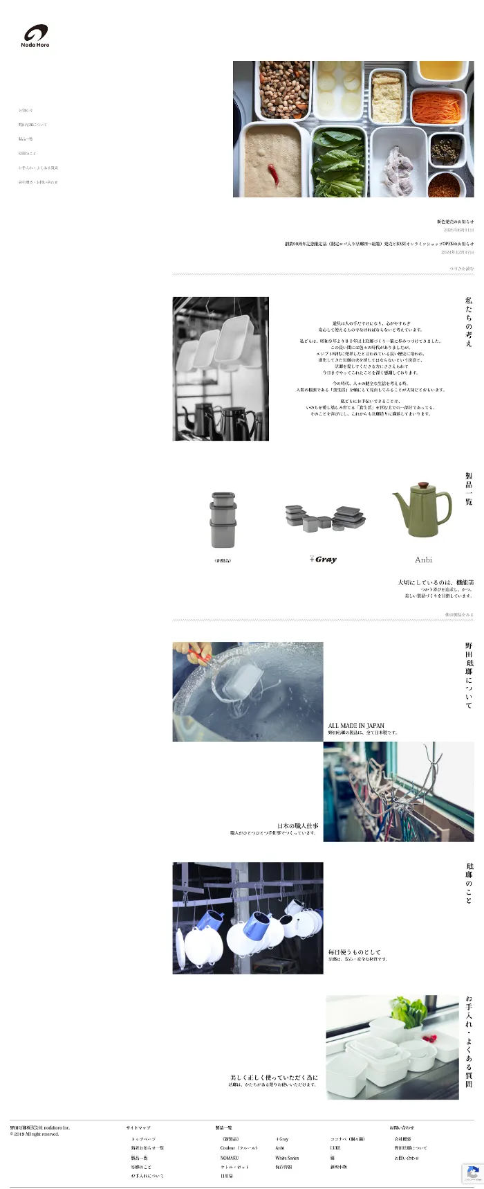 野田琺瑯のwebサイトは、とてもデザインがシンプルで商品のイメージに合っているサイトです。