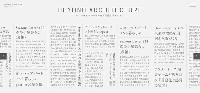 BEYOND ARCHITECTUREのwebサイトは、色々な読み物が掲載されているお洒落なサイトです。