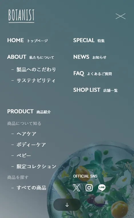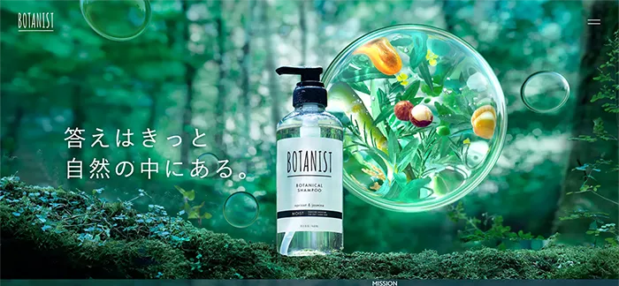 BOTANIST [ボタニスト] のwebサイトは、開くと画像が動いて表示されて、とてもおしゃれな透明感のあるサイトです。