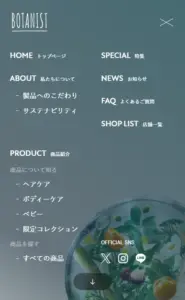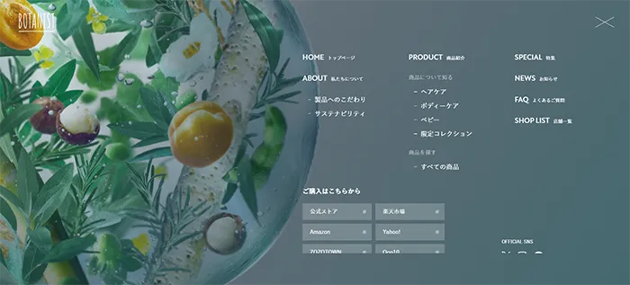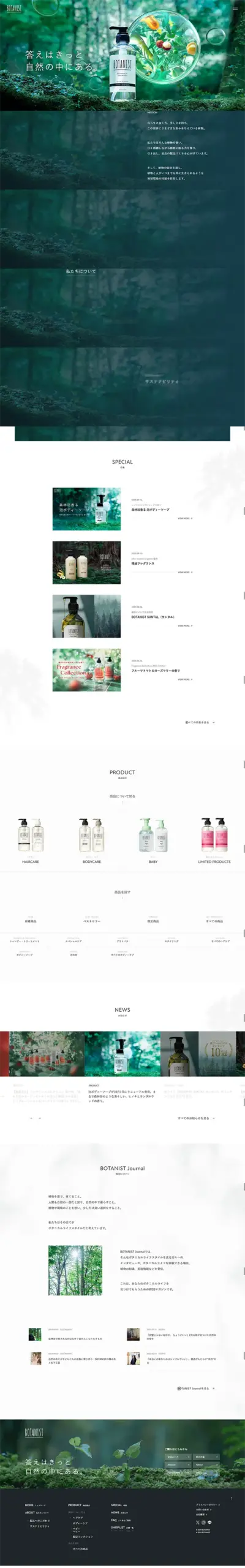 BOTANIST [ボタニスト] のwebサイトは、とても透明感を感じる作りで、商品のイメージがとても格調高く感じるお洒落なサイトです。