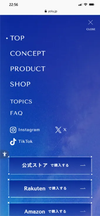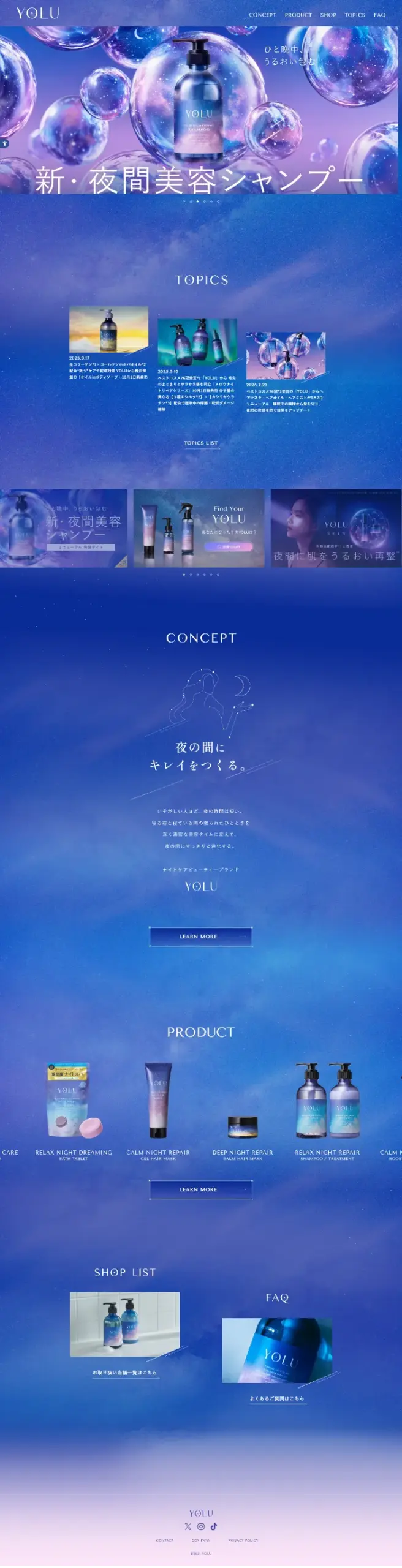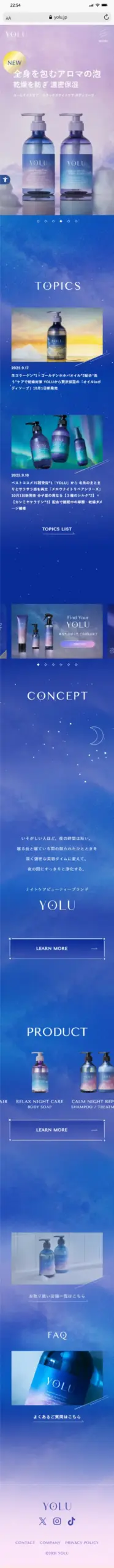 YOLU[ヨル]のwebサイトは、商品のイメージにぴったりなサイトです。
