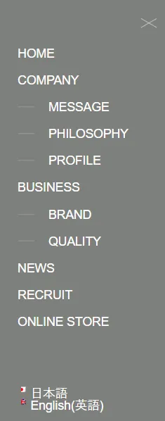 PCは上部にメニューがあり、マウスを乗せるとふわっとボックスが開くリンクもあります。スマートフォンは右上にハンバーガーメニューがあり、タップするとハンバーガーメニューがふわっと開きます。