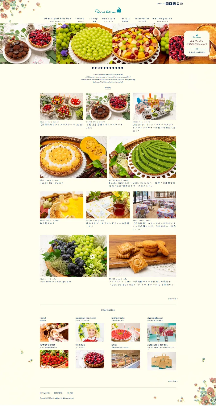 キルフェボンのwebサイトは、画像がとても綺麗で商品が食べたくなるサイトです。