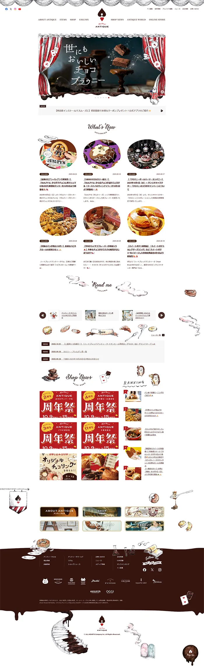 マジカルチョコリングのHEART BREAD ANTIQUEのwebサイトは、イラストの使い方やスクロールすると現れる表現を参考にしたいサイトです。