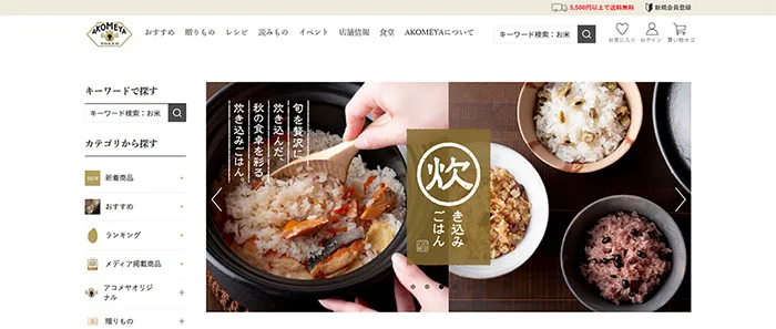 AKOMEYA TOKYO 公式サイト(https://www.akomeya.jp/shop/default.aspx)分析